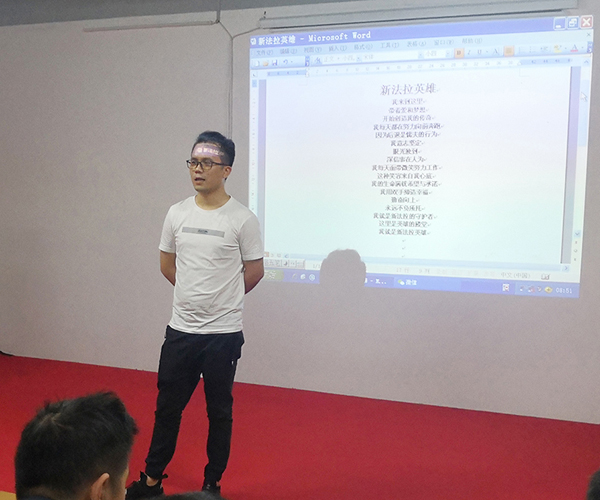 在声情并茂的朗诵结束后,李总经理对新法拉英雄的每一句都作出了深刻的解析。就是希望每一位员工都像军人一样很强的执行力,像学生一样勤奋好学,像家人一样和睦相处,全厂人员团结一致,争取业绩翻番,品质有更进一步的提升,一步一个脚印、踏踏实实的把新法拉做大、做强、做专、做精,争取早日上市。